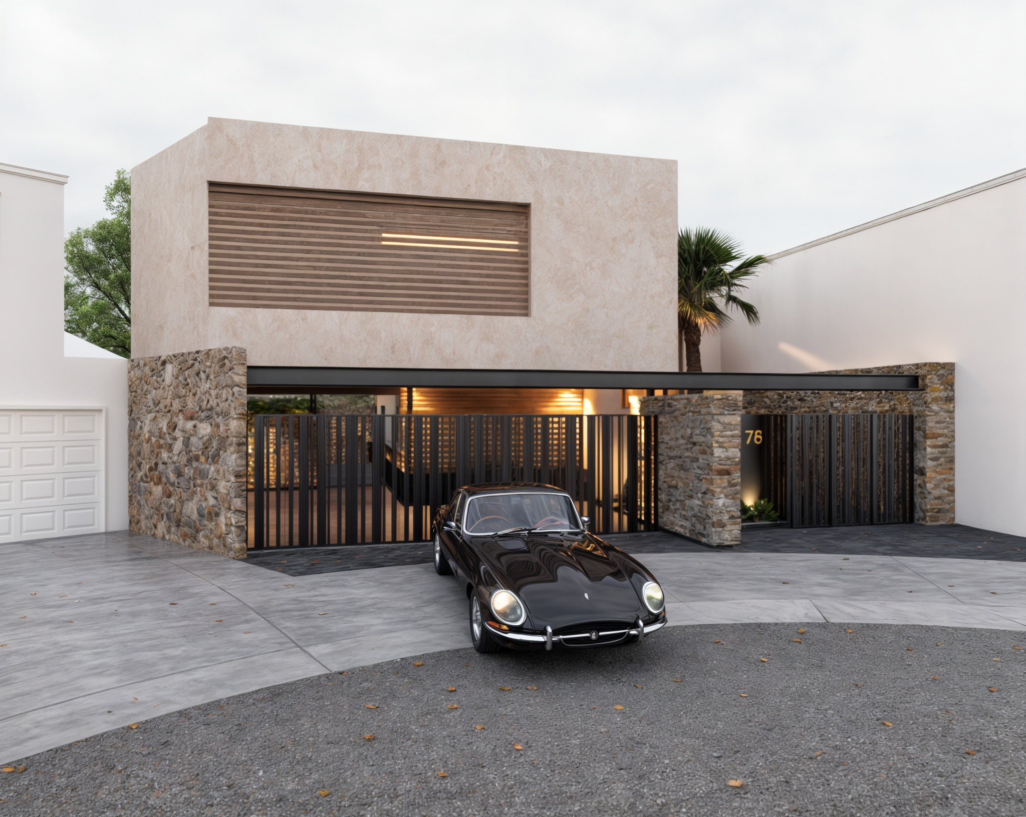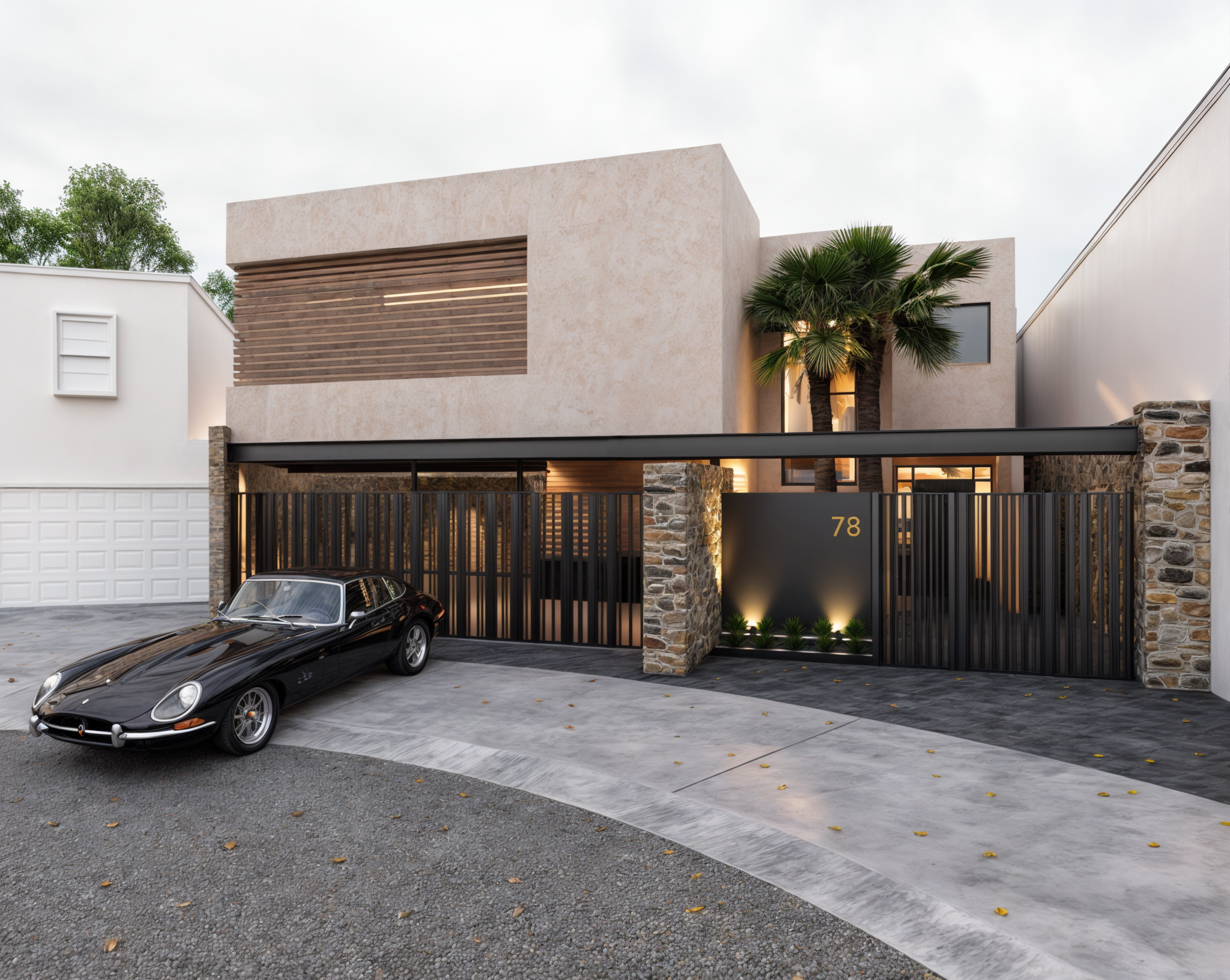 En Taller 03 Arquitectos, transformamos esta casa en un espacio moderno y elegante, completamente adaptado al gusto del cliente. La imagen a color muestra el resultado final, con líneas limpias y materiales contemporáneos, mientras que la foto en blanco y negro destaca el estado original.